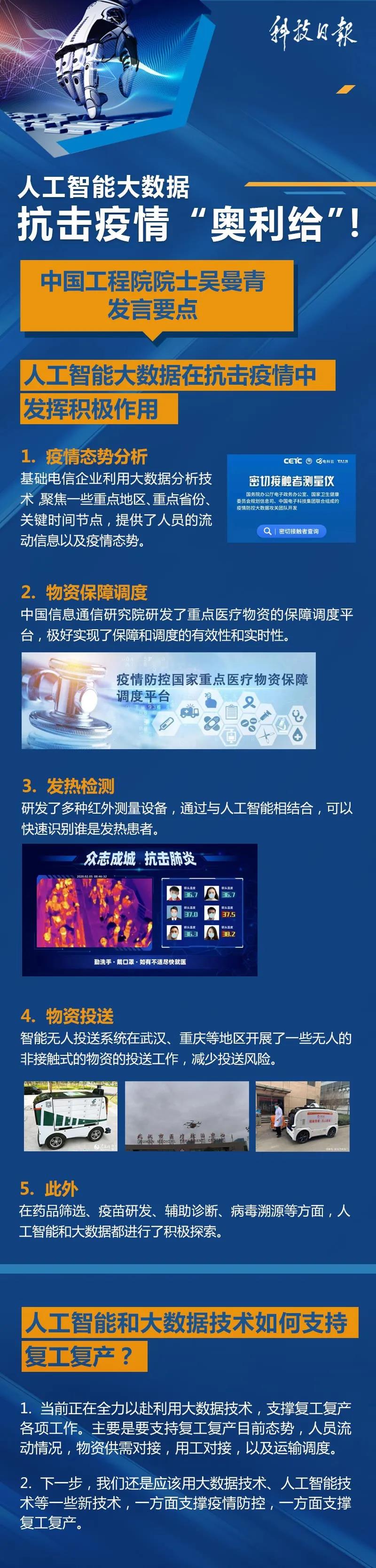 我們看到一些高科技的產(chǎn)品在這次疫情防控中得到很大應(yīng)用,能否具體介紹一下人工智能、大數(shù)據(jù)等技術(shù)在疫情防控中發(fā)揮了怎樣的作用?謝謝。